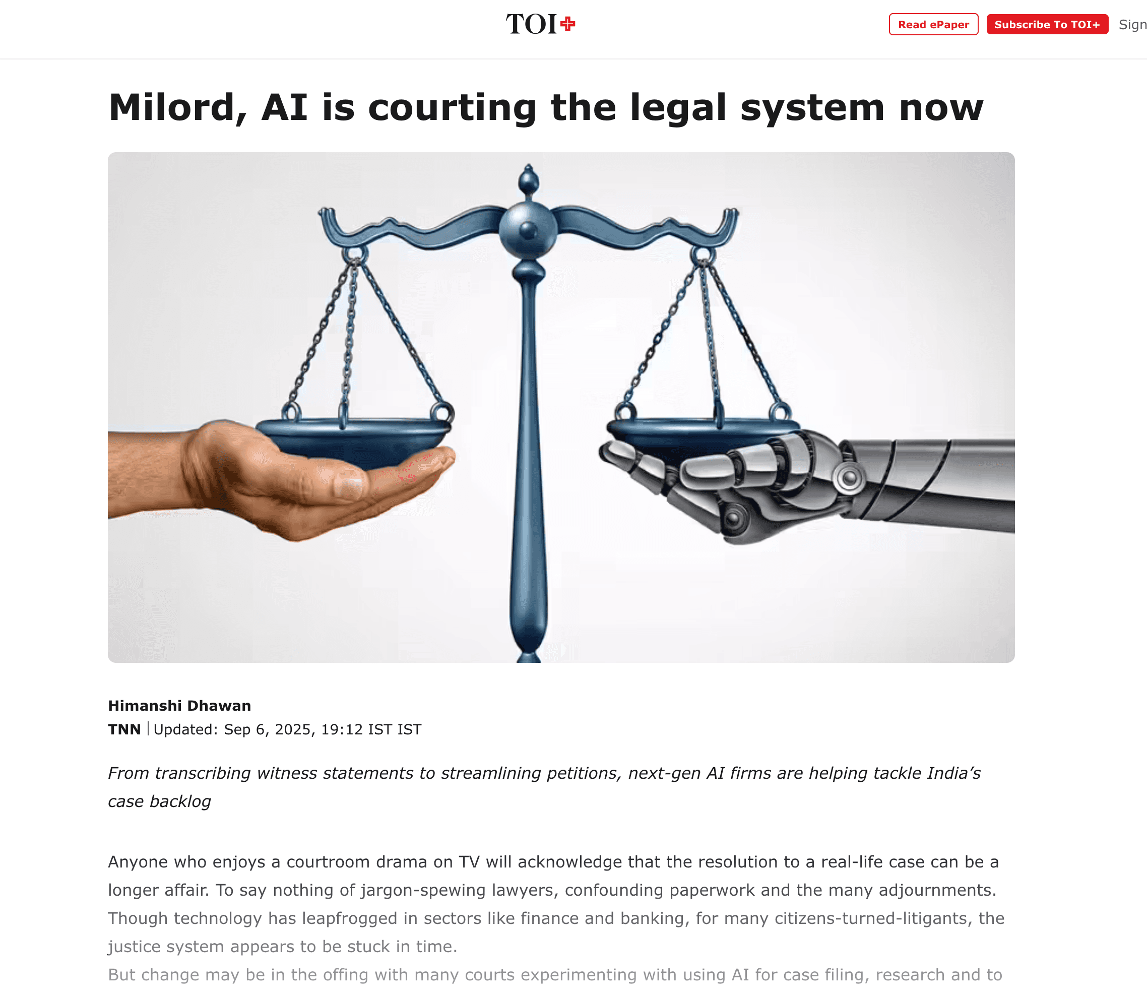Milord, AI is courting the legal system now
