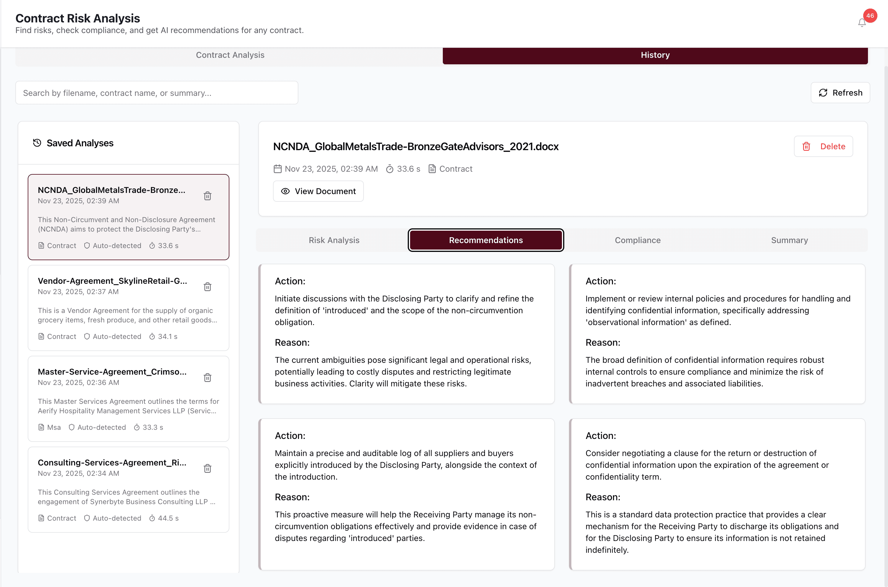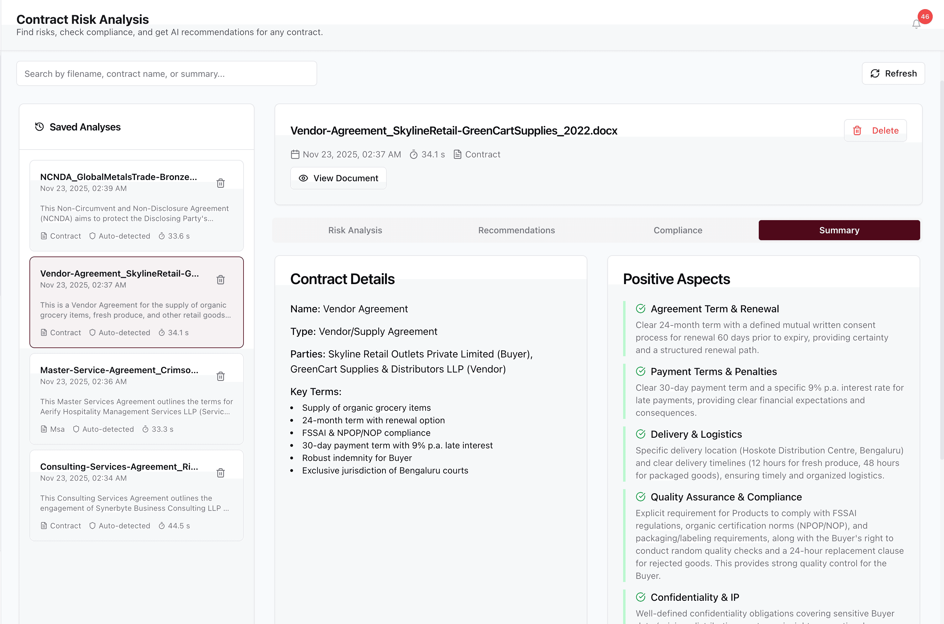 Extracts key clauses, risks, and obligations from contracts automatically